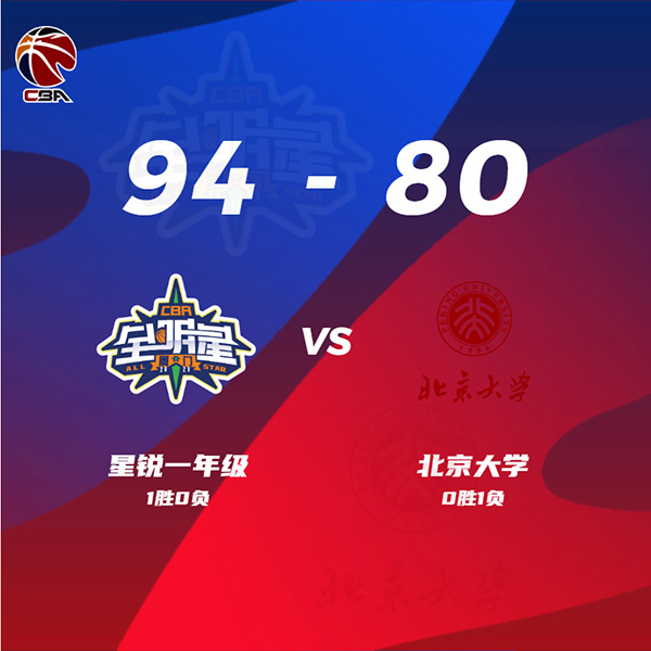 24直播网3月25日讯 CBA全明星周末正式拉开大幕,首先进行星锐赛,由星锐一年级对阵北京大学,星锐一年级由本赛季表现不错的新星组成,北京大学队则是由北京大学的球员组成。比赛一上来,星锐一年级焦泊乔接连内线暴扣打出11-2不错开局,而李苑鑫则是独自撑起北京大学的进攻,林葳主要串联球队,曾凌铉接连外线发炮,李弘权也是里突外投连续取分,星锐一年级还是很快建立起双位数领先。下半场,星锐一年级让更多球员登场亮相,李苑鑫带领北京大学一度追到个位数分差,而星锐一年级得分点众多很快稳住局势,末节星锐一年级连续失误,北京大学接连打成反击一度追到差4分,但星锐一年级迅速回应一波10-0稳住局势,北京大学再无翻盘机会,最终星锐一年级94-80战胜北京大学。