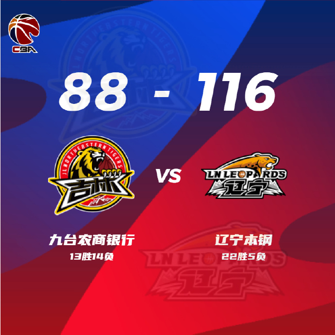 24直播网1月16日讯 CBA常规赛,本轮辽宁对阵吉林。辽宁7连胜高居联赛第三,吉林排在第十二。琼斯本场缺阵。比赛开始,双方开场阶段势均力敌,比分交替领先,相持中辽宁逐渐占据上风,郭艾伦得分助攻一肩挑带队打出18-4的攻击波取得两位数优势,半场战罢辽宁65-50领先。易边再战,吉林率先发力缩小分差,但辽宁及时回暖,多点开花一举将分差拉开到20分以上,吉林毫无起色,辽宁越战越勇将优势扩大到30分以上。最终,辽宁116-88大胜吉林,迎来8连胜。