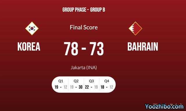 24直播网讯:北京时间7月16日讯 男篮亚洲杯小组赛,韩国队以78-73力克巴林队,三战全胜晋级八强。