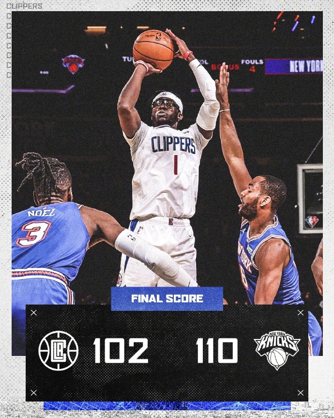 24直播网1月24日讯 NBA常规赛继续进行,尼克斯主场迎战快船,尼克斯本赛季状态堪忧,目前又是3连败目前排名东部第11位,而快船虽然缺少两大主力,但依然排在西部第8位,本场比赛沃克因伤缺席。开局尼克斯上来就手感火热接连在外线发炮建立领先,而快船则是从内线打起追分,后半节双方相继在外线下起三分雨,尼克斯更胜一筹领先了8分,次节双方手感都有回落,尼克斯先打出小高潮领先到双位数,而雷吉也找到手感带领快船连续打出两波进攻高潮追近至5分分差。第三节,双方命中率还是不高,快船更是上来就陷入得分荒,尼克斯抓住机会重新领先到双位数,雷吉和兰德尔也展开对攻,尼克斯凭借外线三分稳住双位数领先优势,末节雷吉带领快船多次试图掀起反攻,但尼克斯今天火热的外线手感始终能给出回应,分差也一直保持在10分左右,最终尼克斯主场力克快船,终止自己的3连败。