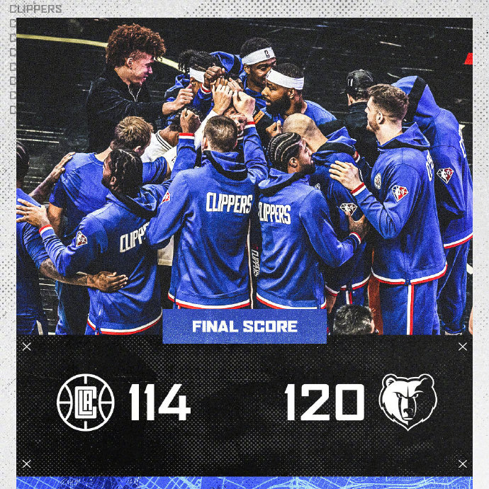 快船(0-2):乔治41分10篮板4助攻2抢断、雷吉17分2助攻、布莱德索12分6篮板7助攻2抢断2盖帽、肯纳德10分2篮板、哈尔腾施泰因11分4篮板、莫里斯9分、祖巴茨6分8篮板3助攻、曼恩3分8篮板3助攻、巴图姆5分5篮板2助攻2盖帽。