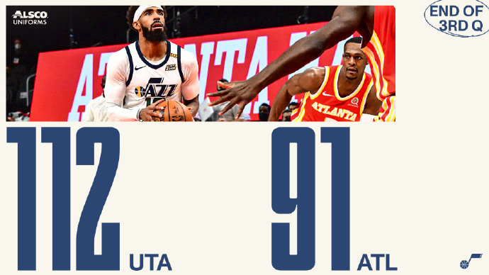 24直播网2月5日讯 NBA常规赛老鹰主场迎战爵士,特雷-杨今日缺战。开场后虽然许尔特首先拿分,但米切尔和博扬联手一波12-0帮助爵士取得领先,首节两队都失误不少,许尔特多次为老鹰追分,第二节两队手感仍旧一般,爵士还是稍稍占据优势,上半场爵士45-37领先。下半场回来在米切尔和博扬的带领下爵士打出攻势拉开比分,第四节爵士更是将分差拉大到20分开外,比赛失去悬念,最终爵士112-91轻松战胜老鹰。