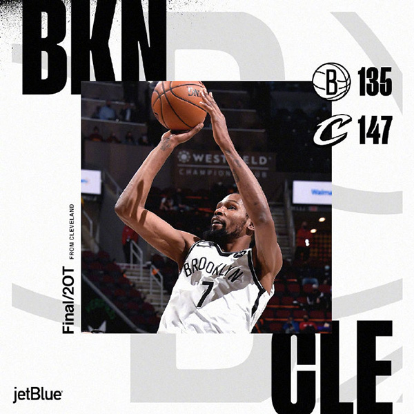 24直播网1月21日讯 篮网前往客场挑战骑士,此役欧文复出,篮网三巨头首次齐登场。首节开局欧文状态火热连续得分,帮助篮网先拔头筹,可是篮网之后命中率下滑,骑士在奥斯曼的带领下回敬一波14-0反超比分。虽然篮网三巨头之后站出来轮番得分,但是骑士亦延续手感,塞克斯顿、德拉蒙德和奥斯曼频频砍分还以颜色,帮助骑士一路保持着领先。不过,篮网在末节展开疯狂反扑,杜兰特、哈登和欧文火力全开率队成功扳平比分,把比赛拖入加时。加时赛里,欧文和杜兰特连续砍分帮助篮网取得领先,但塞克斯顿在关键时刻命中三分把比赛拖入第二个加时。第二个加时塞克斯顿大爆发独中4记三分率队拉开比分,最终骑士凭借塞克斯顿的超神发挥以147-135击败篮网,终结对手4连胜。