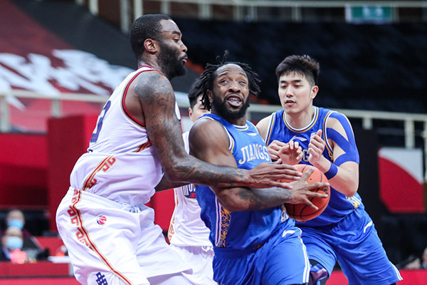 单节比分:27-27、22-19、21-24、32-32,加时11-18(江苏队比分在前)
