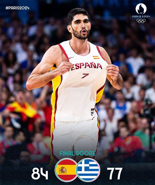 24直播网讯 7月30日 奥运会男篮A组迎来一场关键对决,西班牙男篮和希腊男篮狭路相逢,两支球队在各自的首场比赛中双双输球遭遇开门黑。首节之争双方状态相当且外线手感都非常不错,希腊方面字母哥联手卡拉西斯和帕帕扬尼斯,三人合力拿下球队第一节22分里的20分;西班牙这边阿尔马达表现神勇拿下10分紧追比分;次节西班牙外线突然下起三分雨,他们这一节命中7记三分,上半场三分球17投11中的命中率直接打崩希腊,节中送出一波19-5的攻势一举扭转局势并带着14分优势进入下半场。休息归来西班牙男篮状态迅速回落5分钟里仅得6分;希腊抓住机会送出跨节16-6的攻势并一度追平比分;不过最后时刻西班牙及时站出来用一波8-0重新拉开比分奠定胜局,字母哥则错失绝平三分。最终,西班牙力克希腊拿下比赛,后者遭遇2连败。