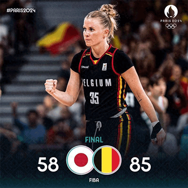 24直播网讯 8月4日讯 奥运女篮小组赛C组,日本对阵比利时。比赛开始,双方开场短暂相持,随后比利时持续发力连投带罚取得两位数领先,次节日本进攻回暖,但比利时稳扎稳打保持场上领先,半场战罢比利时39-23领先16分。易边再战,梅斯曼继续高效输出,比利时延续火力继续扩大优势,末节分差一度来到30分,最终,比利时85-58大胜日本,比利时总净胜分升至0分,超越中国女篮的-1分,锁定了成绩前二好的小组第三,晋级八强!