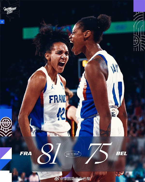 24直播网讯  08月10日讯 巴黎奥运女篮半决赛,法国女篮迎战比利时女篮。首节比赛,双方打得难分难解,比利时首节结束17-14领先,次节回来两队你来我往,半场结束比利时36-31领先法国女篮5分。半场回来风云突变,比利时开场打出10-0,一举拉开分差,法国女篮立刻回了一个10-0,三节结束,法国女篮48-51只落后3分。第四节比赛,法国女篮开始反击,扭转了分差,最后时刻一度领先6分,比利时造3罚全中迫近到3分分差,再命中三分直接追平比分。最后8.2秒,法国最后一攻失利,双方进入加时。加时赛,法国队先声夺人,但比利时依旧顽强追分,但法国队最终把握住了微弱的领先,拿到胜利,杀入奥运女篮决赛。