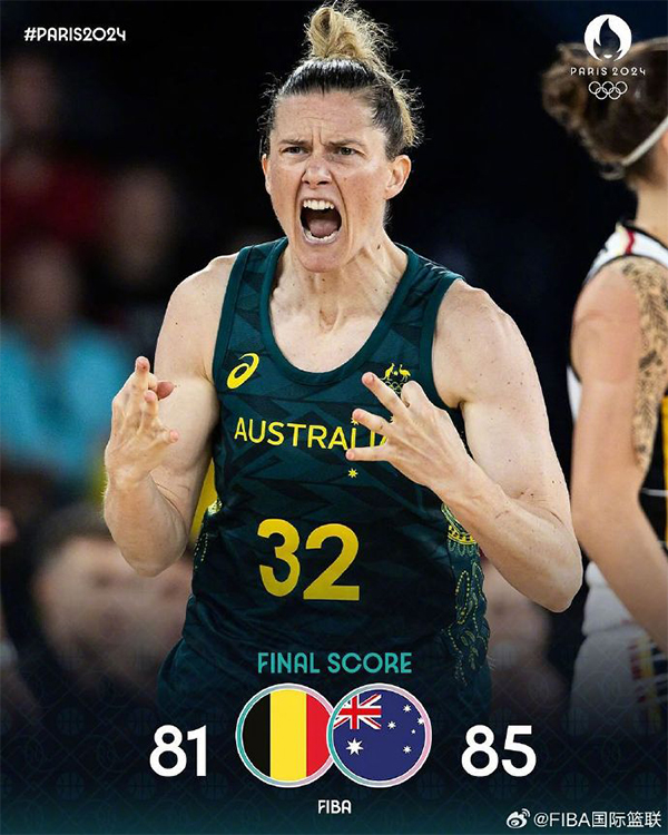 24直播网讯 8月11日讯 奥运女篮铜牌赛,澳大利亚女篮对阵比利时女篮。比赛开始,比利时上来接连外线发炮,但史密斯里突外投迅速回应,马格贝戈接连取分帮助澳大利亚一度反超,首节澳大利亚仅领先1分,次节双方命中率都有下降,马格贝戈状态出色连续取分,但梅斯曼中距离也能回应,惠特科姆压哨三分助澳大利亚半场还领先1分。下半场,马格贝戈继续火热状态接连突破取分,澳大利亚顺势拉开双位数领先,但范卢站出来里突外投连砍10分带领比利时女篮三节终于反超1分,末节范卢三分又进扩大领先,惠特科姆和麦根接连三分回应,随后比利时突然断电,史密斯联手马格贝戈带领澳大利亚一波8-0再次反超回来,德莱尔三分为比利时续命,但比利时关键24秒违例失误,最终澳大利亚85-81险胜比利时,拿到铜牌。