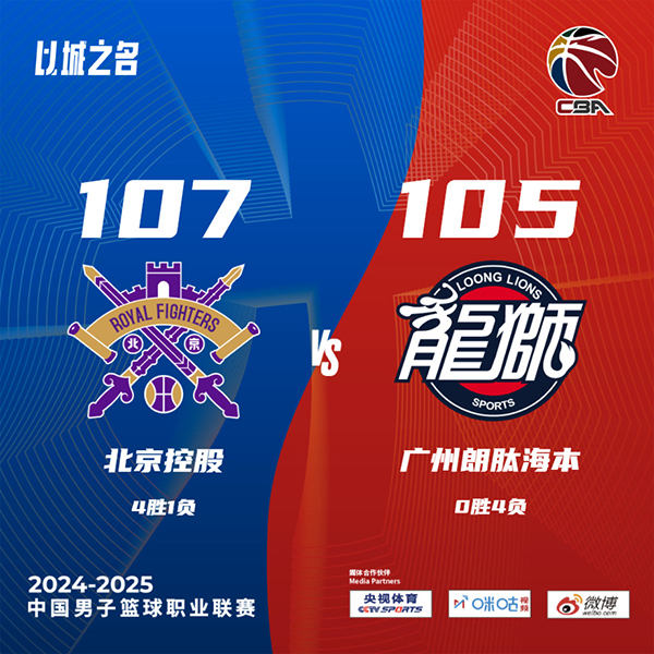24直播网10月23日讯 CBA常规赛,北控主场迎战广州。上半场,双方展开对攻,北控持续发力取得两位数领先,广州内外开花迅速抹平分差,此后双方陷入缠斗,比分交替领先,北控连造杀伤以61-56领先结束第二节。下半场,两队依旧打得难解难分,北控突然发力打出8-0的攻击波,张帆三分将分差拉开到两位数,广州奋力反击回敬19-3的进攻高潮,关键时刻广州连续打铁,最终,北控107-105力克广州,送给对手4连败。