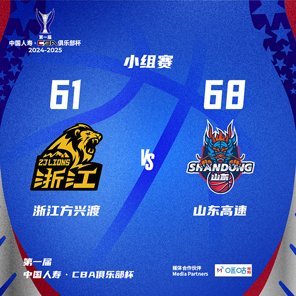 24直播网11月12日讯 CBA俱乐部杯烟台赛区,广厦对阵山东,本场比赛孙铭徽、胡金秋和高诗岩等双方多名主力不打。比赛开始,双方上来十分慢热,半节多比赛广厦得到5分,山东得到4分,随后广厦外援布朗接连取分,首节广厦领先4分,次节广厦进攻端突然陷入得分荒,打了半节多仅得3分,克里斯联手陈培东接连取分帮助山东半场反超1分。下半场,于德豪接连三分命中,但双方整体命中率还是一般,比分持续胶着,山东还是保持微弱领先,于德豪单节4记三分助队领先到7分,末节双方展开拉锯战,布朗和奈特继续帮助广厦追分,但刘毅成为奇兵能给出回应,山东始终保持两球以上领先,最终山东68-61力克广厦。