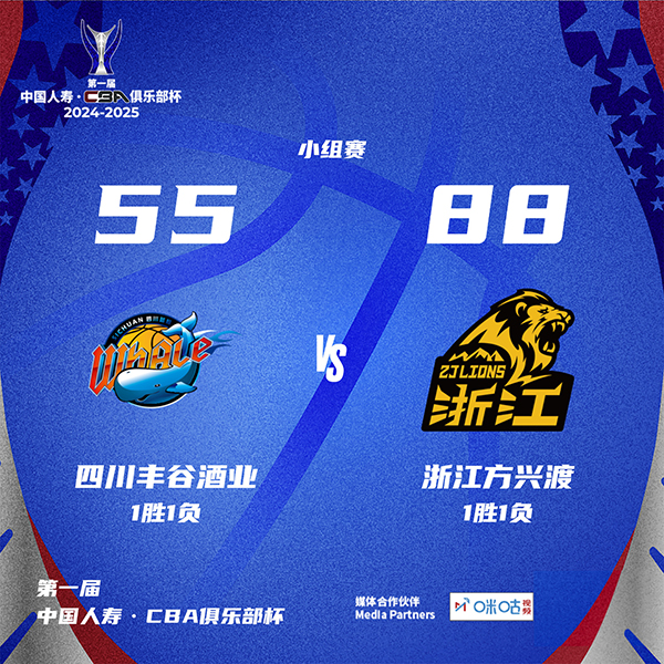 24直播网11月13日讯 CBA俱乐部杯烟台赛区,四川对阵广厦,本场比赛四川继续全华班。比赛开始,双方上来都比较慢热,打了近3分钟各自得到2分,随后双方接连内线造杀伤走上罚球线,四川接连失误被广厦反击,首节广厦领先13分,次节双方展开拉锯战,赵岩昊里突外投连续取分,最后3分钟广厦抓住机会打出12-0一举拉开20分以上领先。下半场,广厦进攻端继续发力,一波14-6攻击波直接拉开30分以上领先,王云章里突外投止血,末节双方展开拉锯战,广厦接连外线发炮重新拉开30分以上领先,最终广厦88-55轻取四川。