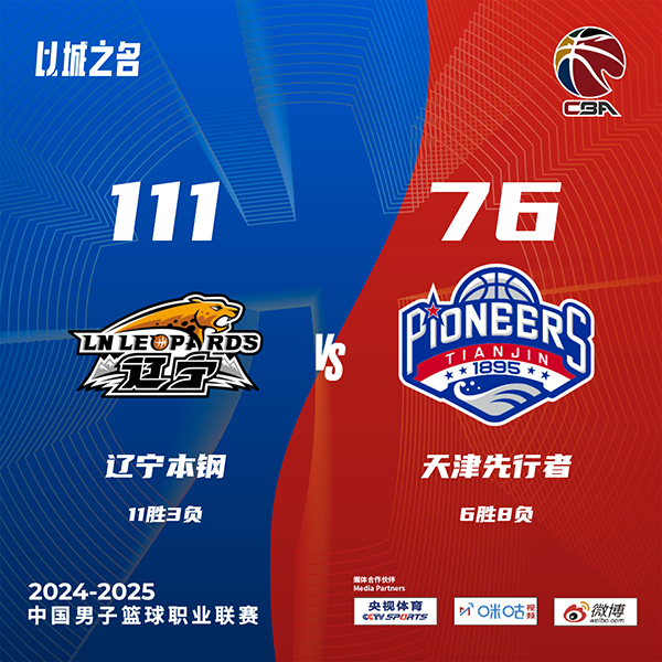 24直播网讯北京时间112月6日讯 CBA常规赛,辽宁主场迎战天津,辽宁目前10胜3负,天津则是6胜7负。本场比赛,张镇麟迎来本赛季首秀;天津外援大卫-詹姆斯缺阵。比赛开始,威尔斯上来接连突破还送出两记漂亮暴扣取分,付豪替补上来内线也3中3,辽宁迅速建立主动权,时德帅两记三分止血后张镇麟三分拿到赛季首分,首节辽宁领先11分,次节威尔斯继续里突外投带领辽宁18-4进攻高潮拉开20分以上领先,随后弗格和付豪继续发力,辽宁半场领先30分。下半场,天津派上全华班练兵,辽宁继续扩大领先,随后辽宁也换上年轻球员练兵,双方命中率有下降但辽宁还保持30分左右领先,末节辽宁进攻端突然停滞,天津顺势13-4攻击波一度追到20分以内,但付豪有攻有传带队回应10-0稳住局势,最终辽宁还是111-76轻取天津。