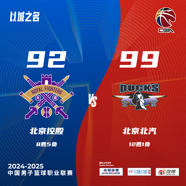 24直播网讯北京时间12月6日讯 CBA常规赛,北控最近取得2连胜,北京状态更佳取得5连胜排到联赛第三。开场后萨林杰内外开花连连拿分,周琦也连续造成犯规获得罚球,并且还能命中三分,两队前半节处于僵持状态,随后陈盈骏和奥莫特联手帮助北京建立领先。第二节上来北京以8-0开局,北控进攻表现不佳只能靠外援利用个人能力追分,周琦内线表现出色还有强势暴扣的表现。易边再战,北京上来延续攻势继续将分差拉大,但北控在特莱斯和萨林杰的努力下又逐渐将比分追上,第三节尾声廖三宁站出来接连砍分将分差追到只差5分。最后一节北控依旧围绕萨林杰继续追分,不过陈盈骏接连砍分强势回应帮助北京再次将比分拉开,最终北京99-92击败北控取得6连胜。