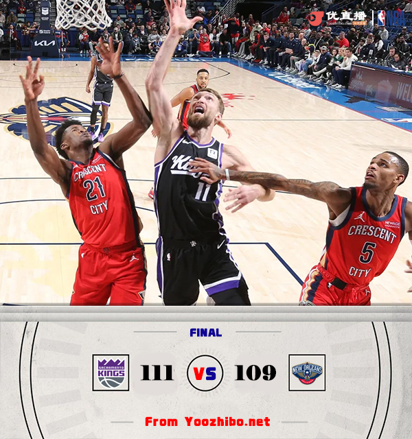 24直播网讯 北京时间12月13日讯 NBA常规赛,鹈鹕今日迎战国王,前者近来遭遇两连败,后者则是取得两连胜,此役锡安、英格拉姆、阿尔瓦拉多、霍金斯和莱尔斯等人缺战,上赛季鹈鹕曾6杀国王。比赛上来,鹈鹕率先进入状态打出7-2的开局,但之后他们突然不得分,国王趁势一波14-0迅速完成反超,之后两队一直保持拉锯,次节鹈鹕连拿六分取得领先,表现慢热的国王始终处于落后,即便小萨半场就砍下20分12篮板,球队还是落后2分;下半场回来,德罗赞突然爆发,两分多钟的时间里连拿14分,球队也在他的带领下占据场上主动,末节国王一直保持着十分左右的领先优势,鹈鹕在比赛结束前虽有追分势头但无济于事,德章泰-穆雷关键失误葬送机会,最终国王险胜鹈鹕,迎来三连胜的同时也送给苦主三连败。