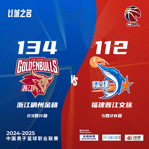 24直播网讯 北京时间1月22日讯 NBA常规赛,浙江主场迎战福建。浙江22胜11负高居联赛第4,福建5胜27负垫底。一开场,浙江率先发力,内外开花很快取得两位数领先,路易斯-金和约瑟夫-杨联手拿分带队追赶,福建一度反超比分,达米安-琼斯和余嘉豪制霸内线,浙江重新占据场上主动,半场打完以66-62领先福建。下半场,浙江火力全开轰出25-6一举将分差拉开到20分,末节浙江越战越勇不断扩大优势,最终,浙江134-112大胜福建,主场过关。