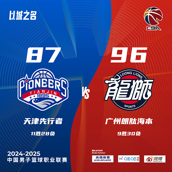 24直播网讯北京时间3月12日讯 CBA常规赛,天津最近遭遇3连败,广州上场比赛击败福建。开场后天津率先进入状态以12-2开局,广州在外线带领下逐渐找到节奏,天津内线占据优势保持领先。第二节上来天津外线手感冰凉,三分频频打铁,广州掀起一波攻势在半场结束时将比分反超。易边再战,两队依旧打得十分胶着,林庭谦和大卫-詹姆斯连中两记三分夺回领先,天津趁势追击将分差拉大。第四节袁照耀和富兰克林一阵三分雨下帮助广州再度反超比分,此后虽然天津努力追分,但于米提和富兰克林帮助广州巩固优势,最终广州96-87送给天津4连败。