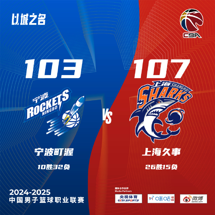 24直播网3月19日讯 CBA常规赛,宁波主场迎战上海。宁波3连败后10胜31负排在第17位,上海25胜15负排在第10位。比赛开始,马奇里突外投撑起宁波进攻,洛夫顿有攻有传单节15分带队能强势回应,双方展开拉锯战,上海接连失误被宁波抓反击建立6分领先,次节洛夫顿杀内线继续无解,带队直接抹平分差,随后布莱德索接连取分一度反超,但最后一分钟突然断电被宁波还是半场领先2分。下半场,上海进攻端还是出现不少失误,两队比分始终胶着,随后洛夫顿接连造杀伤帮助上海重新取得领先,三节上海反超7分,末节上海一度领先近10分,但还是失误被宁波咬住比分,随后比赛进入白热化,李弘权三分后马奇强突2+1迅速回应,布莱德索上篮领先3分,常林绝平三分不中,李弘权罚球杀死比赛,最终上海107-103险胜宁波,送对手4连败。
