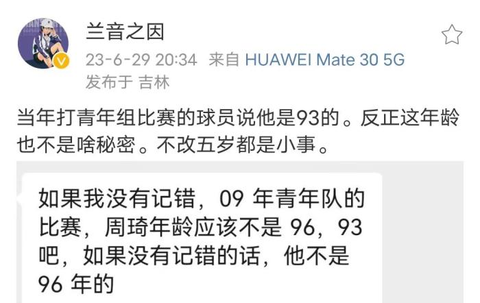 接下来,我们再来说说周琦,因为和知名篮球媒体人兰音的对线,周琦一直处于风口浪尖之上。29日,兰音这边也是曝出了一个猛料,那就是周琦年龄造假,根据爆料,周琦的官方出生年月是1996年,而周琦实际上可能是1993年出生的,如果传言是真的,周琦已经30岁了,这也会让周琦的价值大大下跌。