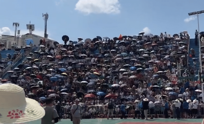 这一届的村BA全国赛,也获得了中国篮球协会提供的技术支持,外界的关注度极高。现场依旧是不卖票,不设嘉宾席,想现场看比赛,就得早点去占位置。根据媒体报道显示,村BA举办地的温度高达38度,已经有球迷提前4个小时进场,打着伞等待着村BA揭幕战,因为一旦去得晚,很有可能就没有位置了。