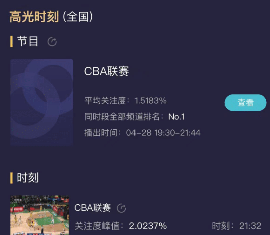 这场辽厦G2的关注度空前,大家都想要看看是辽篮连胜2-0夺得赛点,还是广厦爆发重夺主场优势,最终浙江广厦取得胜利。赛后的收视率显示,这场比赛的收视率也创造本赛季季后赛新高,平均收视率1.5183,巅峰时刻收视率突破2大关,收视率高居同时间段全国第一。