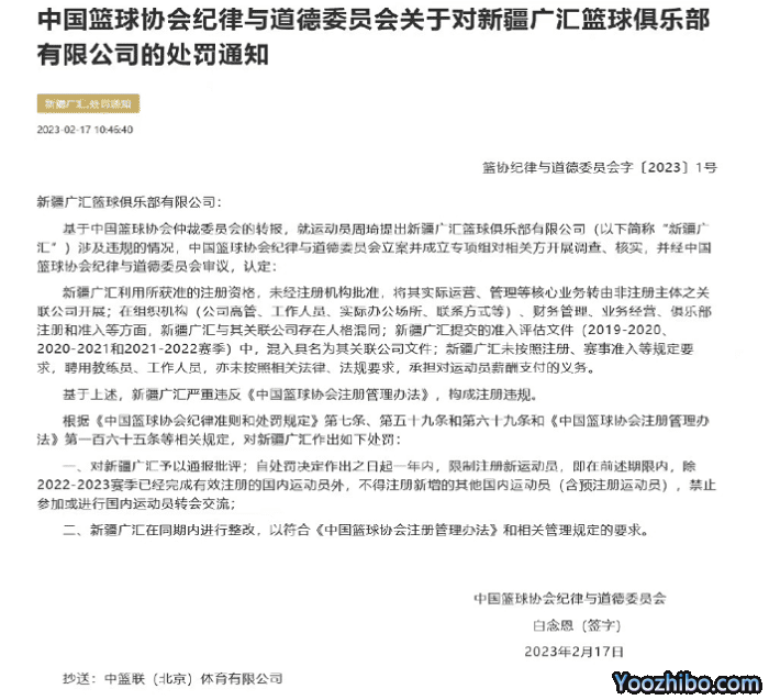 24直播网02月17日周琦终于恢复自由身,在和新疆男篮扯皮两年的时间之后,调查结果出炉,新疆男篮严重违反《中国篮球协会注册管理办法》,存在主体混乱和阴阳合同等,限制一年不得注册新球员。新疆不再具备周琦的独家签约资格,这样按照规定,周琦在下个赛季可以自由身加盟任何CBA球队。