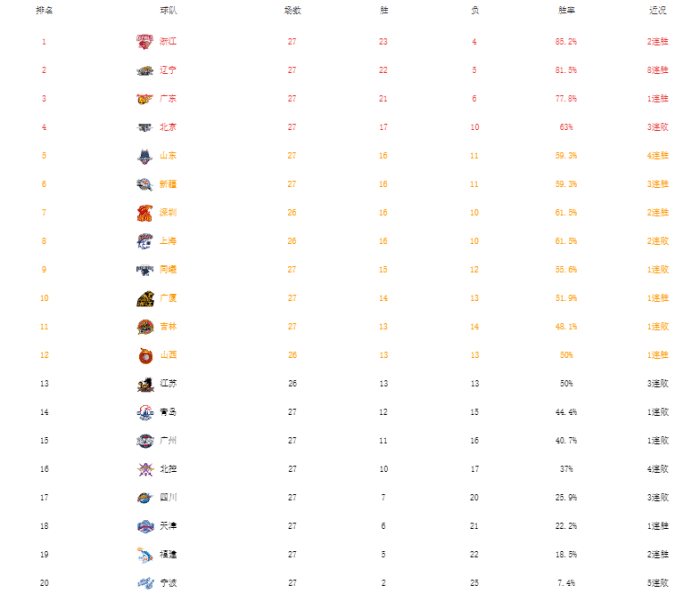 广东男篮是这一阶段表现最好的球队,没有之一,他们只输了两场比赛,对手是榜首的浙江和本赛季的大黑马同曦,期间一度豪取13连胜,也一扫第一阶段只有5胜4负的颓势。广东男篮在这期间击败过辽篮等强队,也送给过浙江男篮赛季首败,他们的整体表现还是很出色的,虽然此前输给同曦,但之后他们大胜四川,拒绝吃到连败。