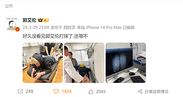 如今郭艾伦在社交媒体上晒出自己的康复照,可以看到染发的郭艾伦趴在床上,被医生检测、治疗、康复,他配文:好久没看见郭艾伦打球了 还等不 。