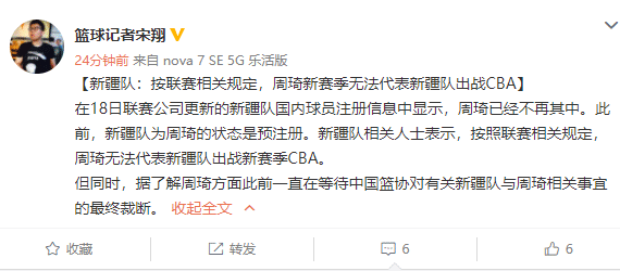值得一提的是,周琦此前确实是有举报新疆男篮,但一直没有等到结果。这件事情的起因是周琦希望在2020-2021赛季结束之后离开新疆男篮,他的合同到期的,但新疆男篮手握周琦的顶薪续约权,只要给出顶薪,周琦就必须留队,不能去其他的CBA球队。周琦希望离开,他认为自己从NBA归来,第一份合同已经和老东家新疆男篮签的,属于是回馈母队,没想到接下来合同到期还受到“顶薪续约权”的限制,所以双方关系不睦。