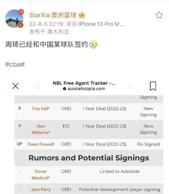 可是在8月5日22时19分,此前多次精准爆料的记者、篮球媒体人“starxia澳洲篮球”在社交媒体上爆料:周琦已经和中国某球队签约。篮球媒体人“starxia澳洲篮球”的爆料也是让周琦签约再一次被顶上了热搜,毕竟如今的周琦签约不仅仅是周琦一个人的事情,因为周琦和新疆男篮的关系,想要周琦就必须送出足够的筹码或者现金,周琦签约很有可能让CBA出现大的波澜,而且一旦周琦签约,郭艾伦想要寻找下家就很艰难了,毕竟能够给的出筹码的球队并不多。