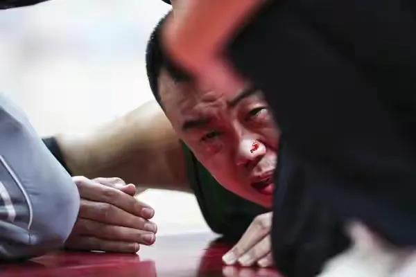 比赛来到了第三节还剩下5分钟,威姆斯借助挡拆对位韩德君,或许是知道脚步难以跟得上威姆斯,韩德君下手掏球,这也让威姆斯在合球的时候肘击到了韩德君的面部,大韩也是当场飙血,随后裁判吹罚韩德君阻挡犯规,威姆斯违体犯规。