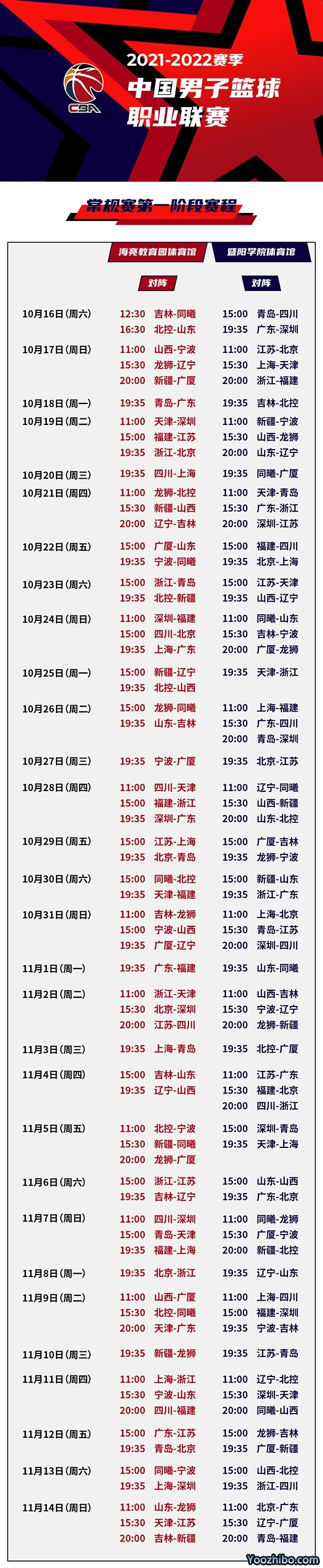 2021-2022赛季CBA常规赛赛程表(点击查看具体赛程)