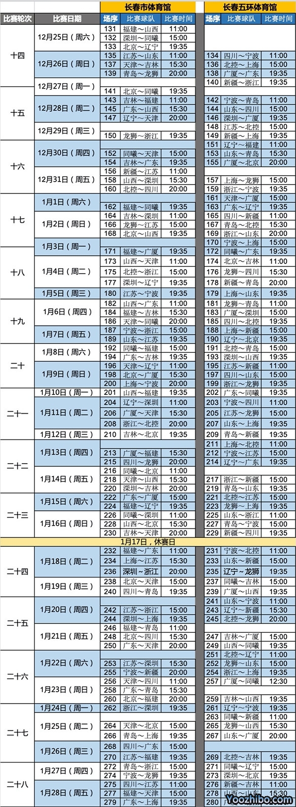| 2021-2022赛季CBA常规赛第二阶段赛程表 | ||||