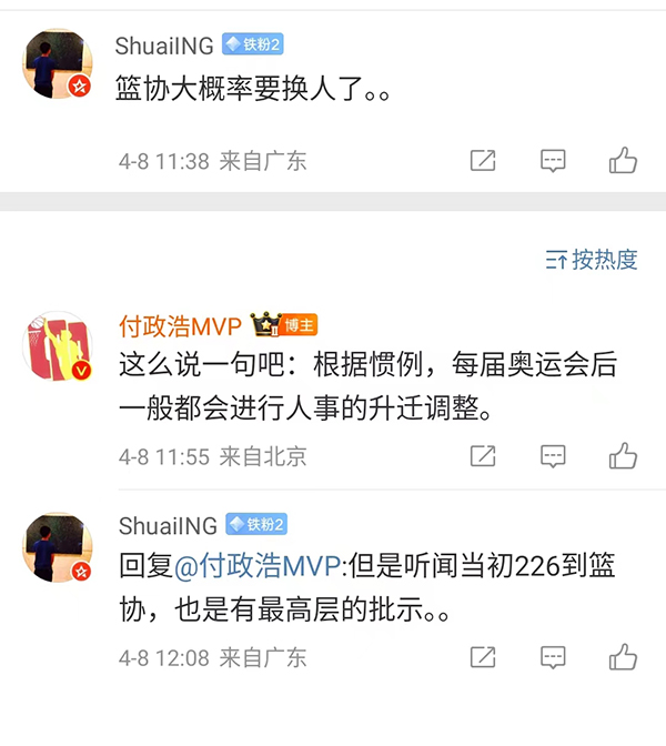 众所皆知,在管办分离之后,总局只是篮协的业务指导部门,对于篮协的直接管理力度不如此前,这也是总局一直对于篮协的举动没有太多动静的原因,而付政浩表示:如今总局有了高层(分管文体的最高层)的批示,总局拿着尚方宝剑,在对篮协进行业务指导硬气多了。