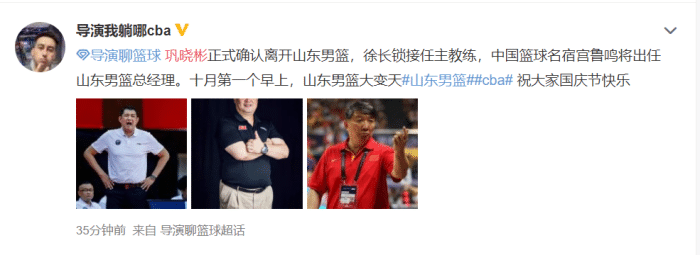 9月30日,山东男篮重新集中,但是教练组并未现身。从最新消息看,巩晓彬确认离开,他的助教杨文海、侯冰将一起离开山东男篮。全新的高速时代,徐长锁将担任山东男篮的主帅,徐长锁也是山东男篮昔日主力,之前曾带领青岛青年队拿到全国冠军,也曾出任国家队助理教练,如今正式成为山东男篮主帅。