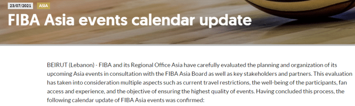 24直播网讯 输掉东京奥运会落选赛,没有成功冲刺奥运会的中国男篮,同样进入了紧张有序的备战,原以为不会坐在家里观看奥运会,应该会在亚洲杯赛场上驰骋,中国男篮最终还是无奈要就地解散,据FIBA官方表态亚洲杯延期一年举办,也就是说要等到2022年7月进行,原定时间是2021年8月,不难看出来FIBA对于当前局势下举办亚洲杯,确实损失较大,这一点从东京奥运会上就能看得出来。