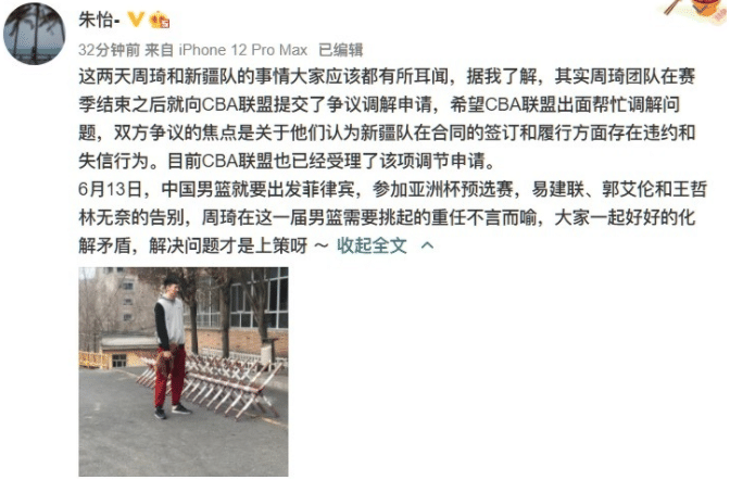 是的,周琦团队向CBA提交了争议调解申请,焦点在于新疆队存在违约与失信行为,里面涉及的细节很难说得一清二楚,利益上的纠纷,在CBA限薪令之下变得更为的复杂,或者又很简单。记者朱怡都表示“周琦在这一届男篮需要挑起的重任不言而喻,大家一起好好的化解矛盾,解决问题才是上策。”,但解决问题恐怕没有表面上那么简单,周琦不想在新疆队打球已是种种迹象表明:周琦就是想离开新疆男篮。