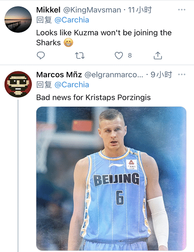 还有紫金球迷表示:“可惜了,库兹马去不了上海了”很显然这是不喜欢库兹马的球迷,希望他可以离开湖人,而近期库兹马确实有离队传闻。