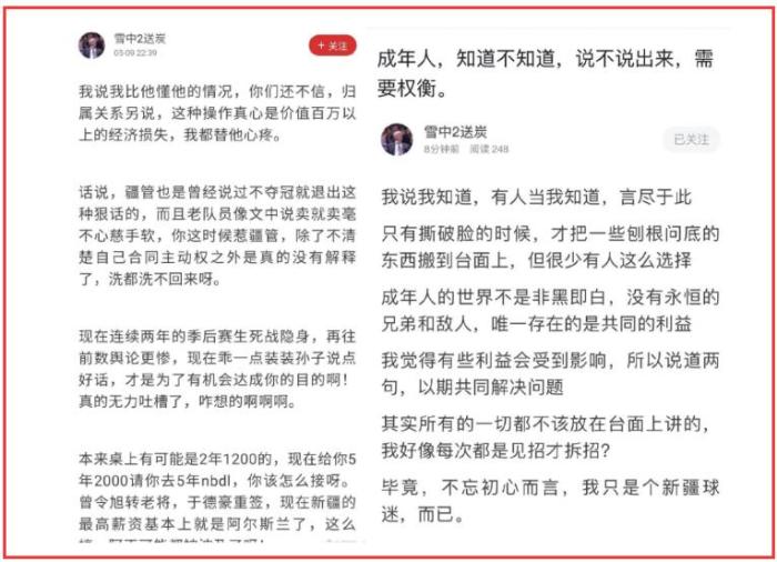 言下之意,似乎在预示着,这次新疆男篮放出来的顶薪续约拒绝交易的传闻,并不是“周琦去哪里”的大结局,而后续很可能还会有其他的情况发生。