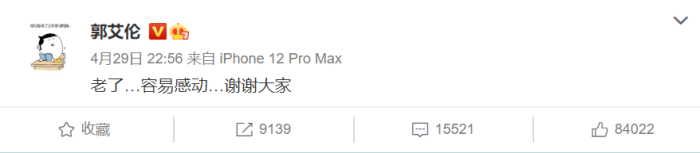 33分7板4助攻,血拼47分钟,下半场几乎一分钟没歇,郭艾伦真的拼尽了全力,也奉献了一切!当队友都无法得分时是他站出来去带领球队,其实这一直是他的打法,只不过打进了就是欢呼打不进就是谩骂声!赛后在采访环节球迷高呼郭艾伦的名字和MVP,他也哽咽了,随后更新微博表示“老了…容易感动…谢谢大家。”