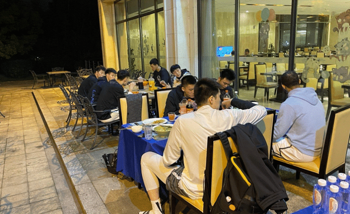 可想而知杜锋亲自安排给球员们改善伙食,肯定是大餐,所以我们看到了杜润旺和曾繁日,吃得非常香,他们甚至连头都不愿意抬起来。而胡明轩一边看着其他的方向,一边拿着羊肉串,也是美味不可阻挡。不得不说这次杜锋指导真的是发力了,毕竟到了总决赛,球员们也确实都很辛苦,这个时候的训练是不能放松的,但球员们的体能储备也是很关键的。