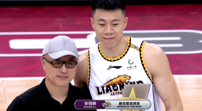 24直播网讯 4月19日,CBA季后赛8进4继续进行,辽篮和广厦的比赛开始前。张镇麟领取了属于自己的年度最佳星锐球员的奖杯,颁奖的是辽篮总经理李洪庆,恭喜。