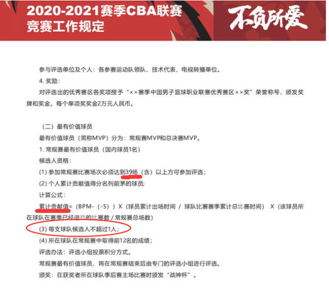 原因很简单,因为在评选规则中明确说明,最佳外援场次至少需要达到39场,而琼斯只有37场,2场比赛就注定让琼斯与MVP失之交臂了。