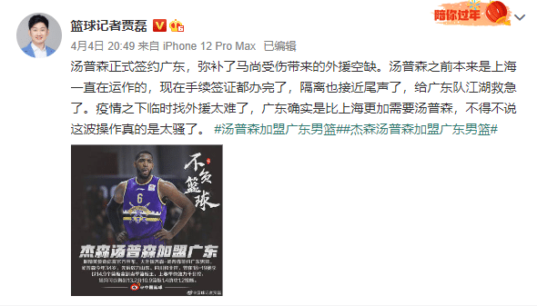 但对于广东球迷来说,那简直要把屏幕舔到死机,马尚赛季报销仅一个星期多点,就有新外援来,这效率太恐怖!