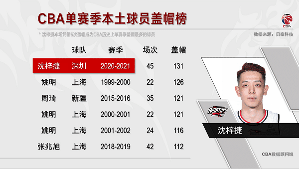 24直播网4月3日讯 ,CBA常规赛第53轮结束了一场焦点战,广东114-95击败深圳,豪取8连胜的同时赛季横扫德比对手,同时广东队史上第14次夺得常规赛冠军,此前13次他们有8次拿下总冠军,恭喜广东。这场比赛开始前,朱芳雨代替受伤的马尚领取月最佳外援的奖杯,此前马尚在对阵浙江的比赛中重伤,已经确定赛季报销,这也让广东的卫冕蒙上了一层阴影。本场比赛沈梓捷送出6次盖帽,单赛季盖帽数来到131次,超越姚明(126次)成为CBA历史上单赛季盖帽最多的球员
