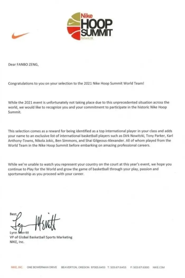 除了郭艾伦外,中国篮坛现在最纠结的球员大概是超新星曾凡博,他近日收到了2021年某球鞋品牌篮球峰会的邀请。