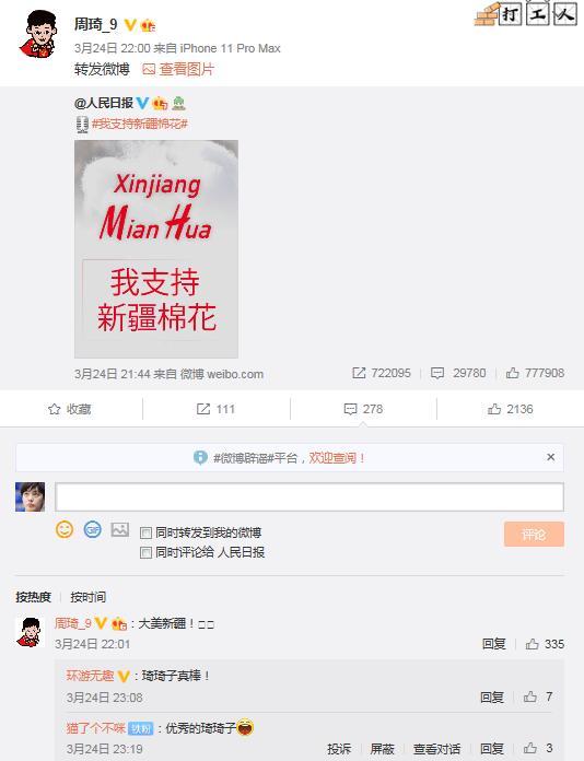 24直播网3月26日讯 新疆棉花成为了当下最热的话题,无论是运动员还是娱乐圈的明星也让国外另有企图的企业看到了我们的决心。