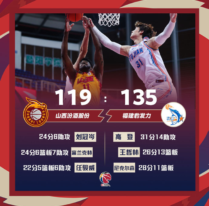福建135-119大胜山西 高登31+14 王哲林26+13 富兰克林24+6+7