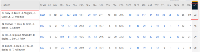 先说说库里的使用率,对爵士一战赛前,ESPN数据专家凯文-佩尔顿给出了一项数据。库里在首发阵容中的使用率只有22%,而在其他阵容组合中的使用率高达35%。原因在于对手面对勇士首发时,往往会战略性地忽视乌布雷、格林和怀斯曼,把主要防守精力放在库里身上,让他减少出手机会。而当勇士换上更擅长投射的李或穆尔德时,库里的得分机会反而会多起来。