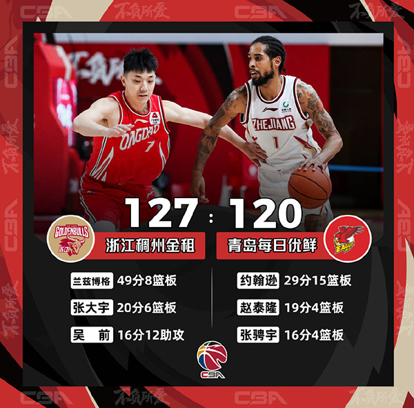 CBA简报:浙江127-120力克青岛 兰兹博格49分