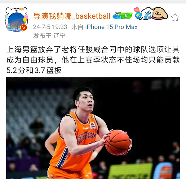 没有办法引入球员,这也意味着上海男篮无法参与到周琦的争斗战,不过这可是无可奈何的。没有国内球员进入,已经让上海男篮球迷失望,可是偏偏近期,知名辽宁篮球媒体人“导演我躺那”报道了上海男篮这边的球员离队的情况,上海男篮休赛期离队第1人也是曝光了。